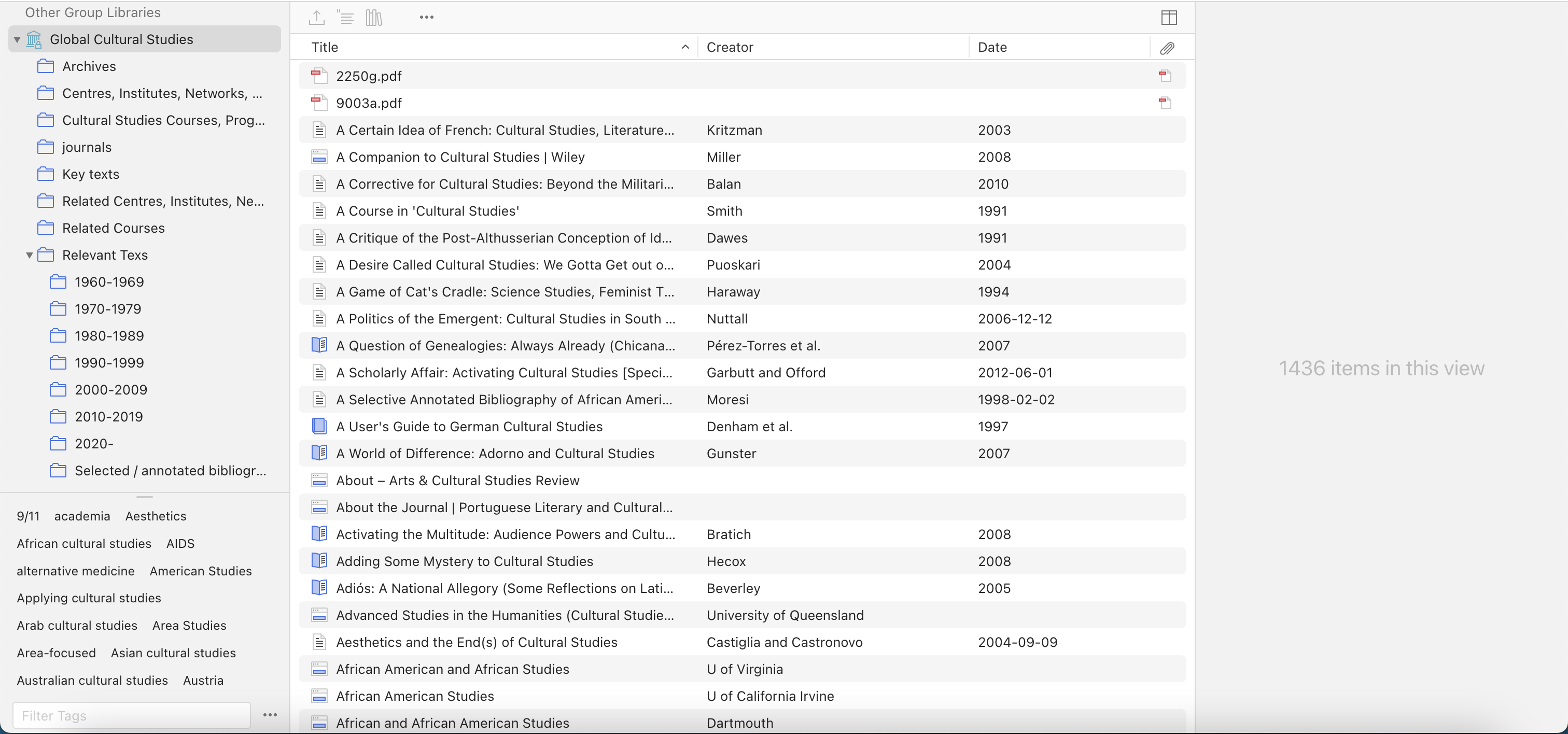 This resource was put together by Dialogues researcher Katherine Parsons and is the culmination of work by the Global Cultural Studies Network. In addition to international cultural studies courses, centres, and journals, the bibliography includes 750+ texts on cultural studies from 1969-2012.